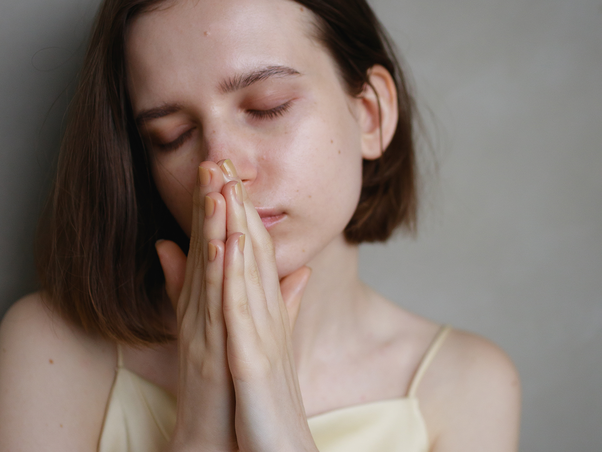 両手で三角をつくるように鼻の前に添え、香りをやさしく包み込むようにして、ゆっくりと深呼吸します。